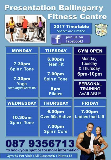 Eoin is also a Spin instructor and instructs a Ladies weight lifting class once a week see – timetable